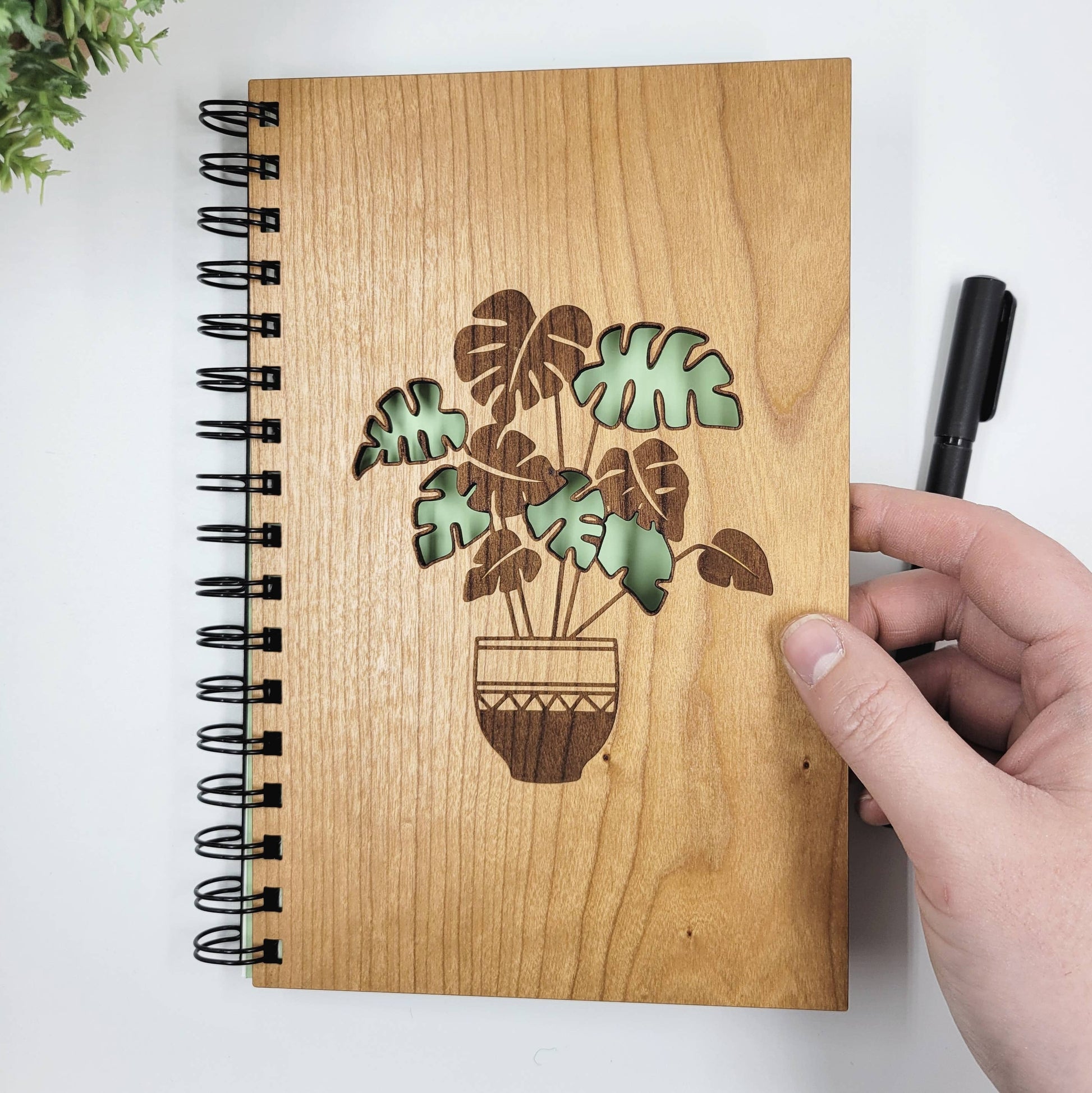 Keep your thoughts, dreams, and designs all in one place with your new genuine wood veneer cover journal. Our wood journals are laser engraved in-house and filled with 120 pages of premium writing paper that provides plenty of room to capture inspiration with no limits. Each journal is crafted from sustainably sourced and eco-friendly real wood veneer covers. Covers are finished with a luxurious satin-feel lacquer that accentuates the natural beauty of your new wood journal. Details • 5.5 x 8.5 inch wire-bound journal • 120 pages (60 sheets) of premium blank paper • Laser engraved real cherry wood veneer cover • Sturdy black chipboard back • Crafted with sustainably sourced wood & partially recycled paper • Proudly handmade in the USA by a woman-owned business