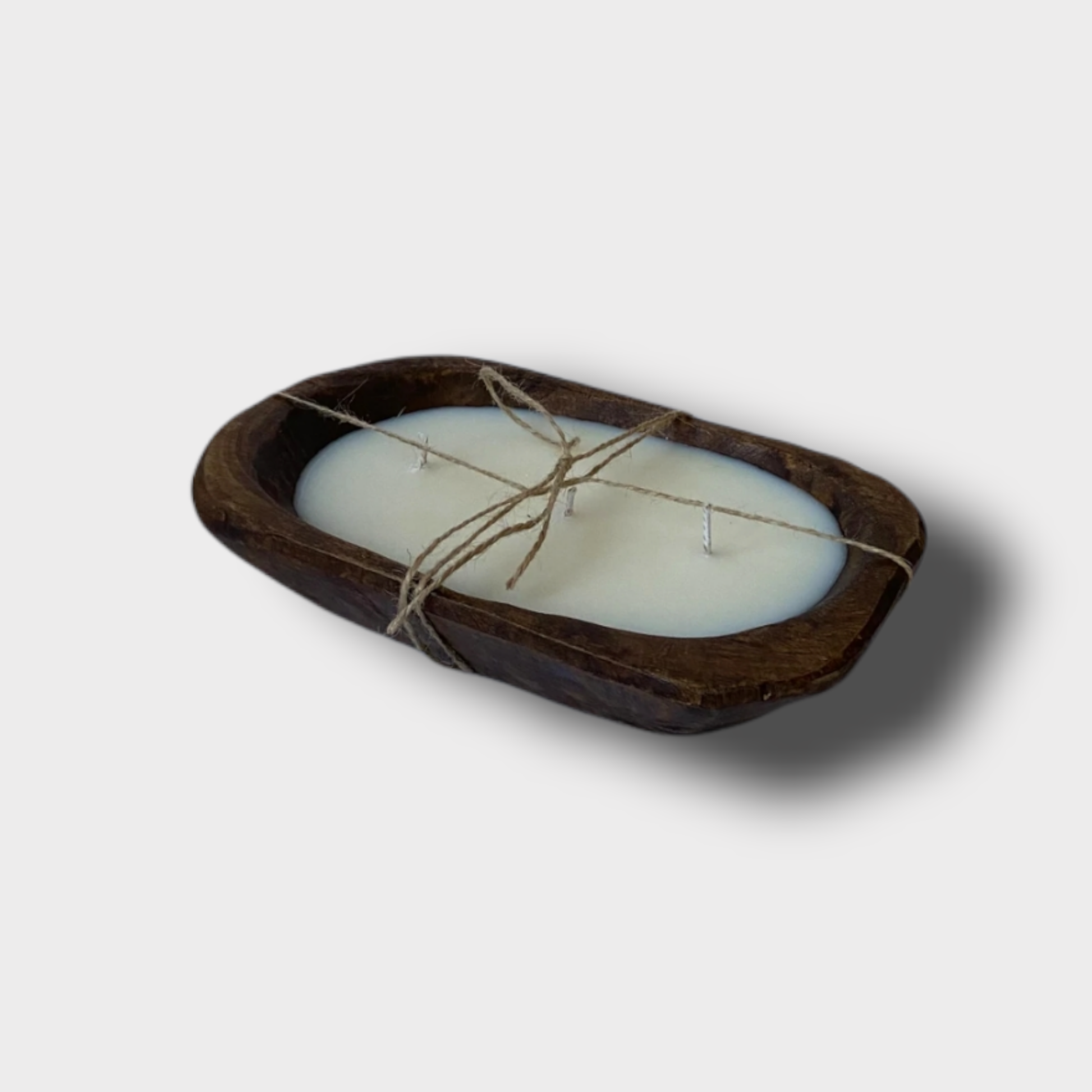 These lovely dough bowl candles are the perfect addition to any home. The bowl itself measures 9-10" 5-6" by 1.5" and encompasses 16 ounces of coconut-soy wax, phthalate free fragrance oils, and three eco wicks for ultimate clean burning. When they are done burning, use as a great accent piece or catchall or purchase a refill kit in a new great scent.