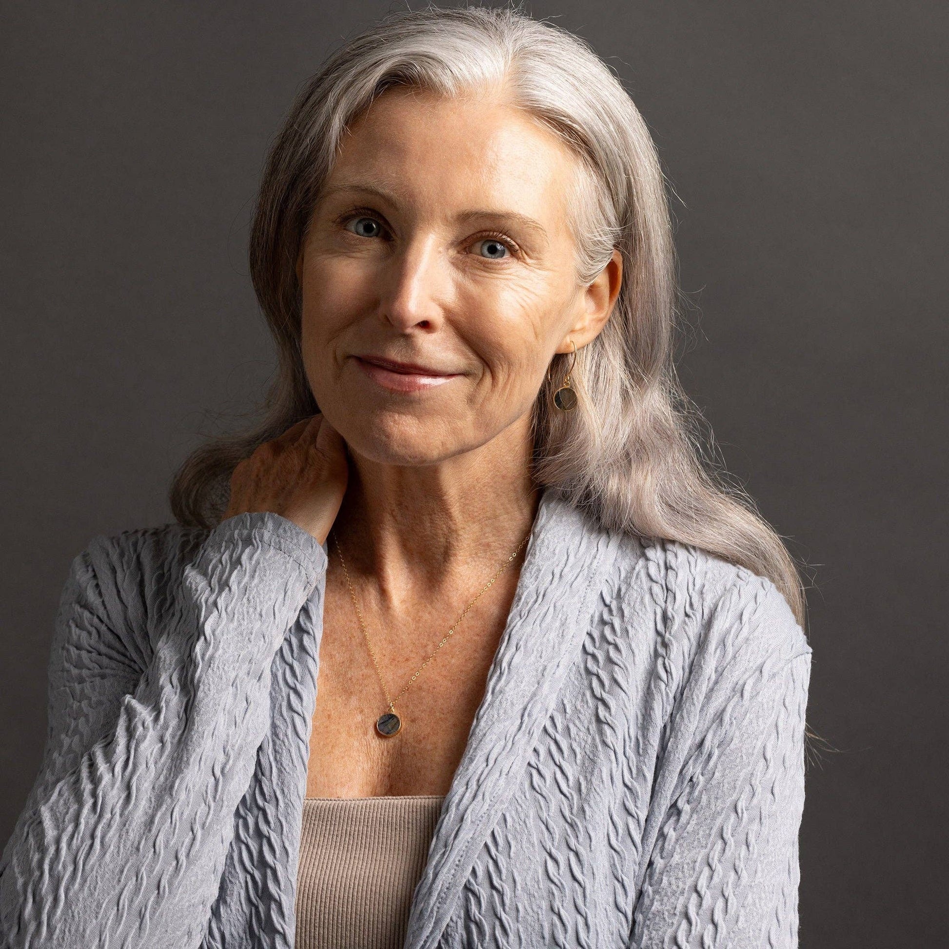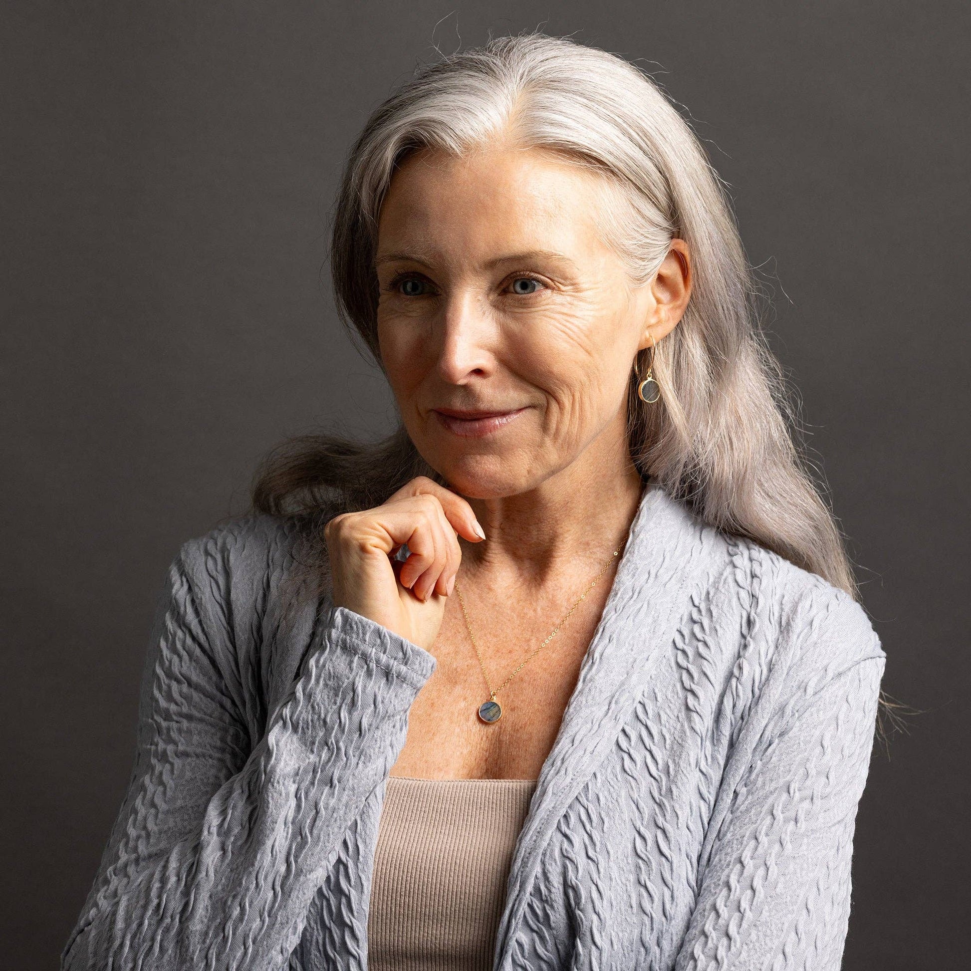 Labradorite Gold Round Pendant Necklace - Minimalist Geometric Gold Gemstone on Dainty 14k Gold Filled chain - Jewelry gifts for Mom, her