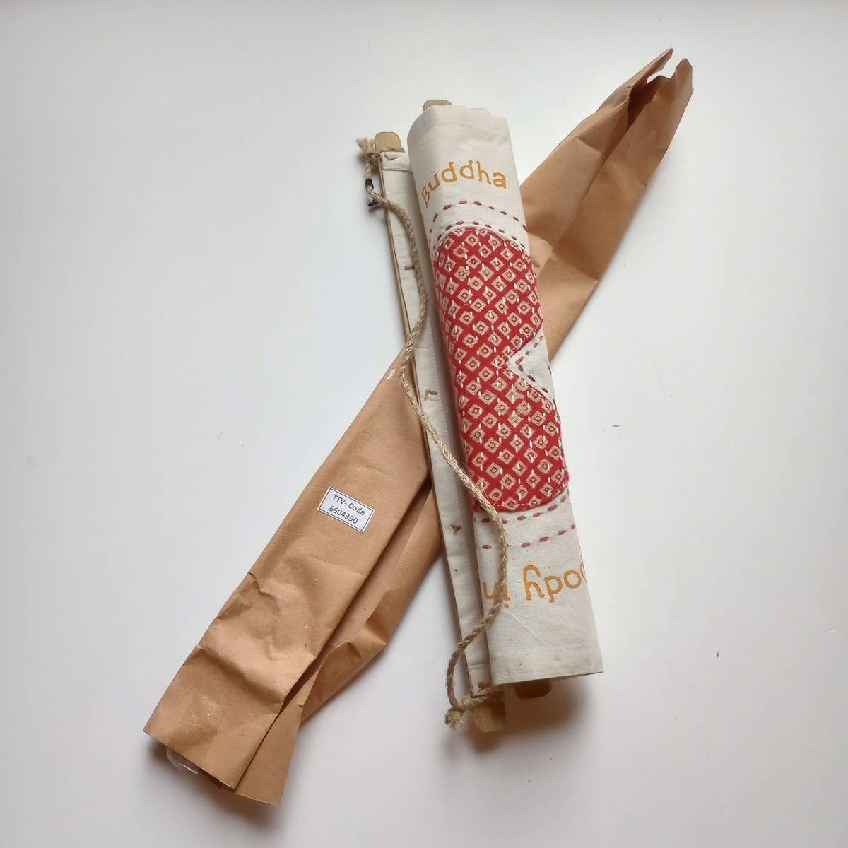 Bring positive energy and self-love into your space with our You Deserve Love Anahata Wall Hanging. Handmade by artisans with Prokritee in Bangladesh using traditional Kantha stitch, it features a recycled sari fabric heart with a powerful Buddha quote. Around the heart, it says, "You, yourself, as much as anybody in the universe, deserve your love and affection - Buddha". Add it to your room and inspire self-care and inner peace with this beautiful artisan-made wall hanging. Materials: Cotton, recycled cotton sari, bamboo - Measures: 14"L x 13"W - Colors: Cream, red, yellow, assorted hearts